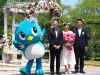 八千代市イメージキャラクター『やっち』、服部八千代市長、高橋真麻さん、京成バラ園芸株式会社清水社長(右から)